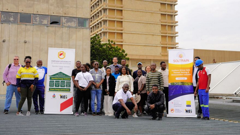 Technical and social issues were on the agenda at the SOLTRAIN+/IEA SHC Task 69 Joint Symposium held in Windhoek, Namibia, at the end of September. The first day focused on standards and certification training, while the second day centred on gender equality and women’s empowerment. The event was jointly organised by SOLTRAIN+  ­ a regional initiative for capacity building and the demonstration of renewable heating and cooling and energy efficiency in the SADC region, the Namibian Energy Institute, and experts from Task 69 on Solar Hot Water for 2030 within the IEA Solar Heating and Cooling Programme. The photo shows symposium participants during a technical tour of the solar thermal installation at Katutura Hospital in Windhoek. The pumped system, featuring a 120 m² collector area from Austrian manufacturer Greenonetec, supplies hot water to the hospital’s maternity ward.