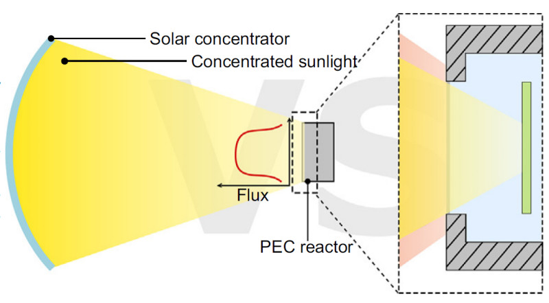 McGregor: In my background field of CSP, the whole goal of a concentrator is to create as much heat as possible often using concentration ratios over 2,500 - to maximise turbine efficiency. But PEC chemistry simply can't survive that. Photoelectrodes are highly sensitive to temperature; for example, materials such as BiVO4 - Bismuth Vanadate - begin degrading at temperatures just above 40 °C. The elevated heat accelerates side reactions and photocorrosion. Therefore, we can't just bolt a standard CSP concentrator onto a PEC reactor. We have to specifically tailor the optics to provide a 'sweet spot' with moderate concentration, typically around 10 to 50 suns, so we boost the chemical production rate without cooking the reactor. And we have to do this with reflective materials with the right optic (bandgap) properties.